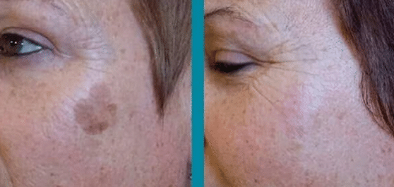 Atenúa o elimina lentigos solares y de la edad. Es un tratamiento rápido e indoloro. Los resultados son visibles desde la primera sesión